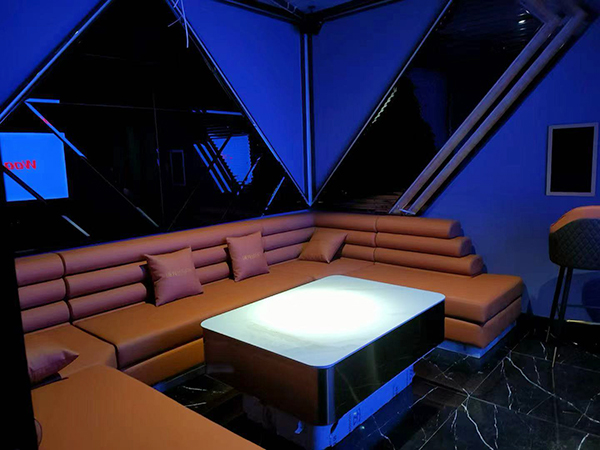 通常KTV会所的家具要具有实用性和美观性以及舒适性的特点,方便顾客使用也是非常重要的因素。由于KTV属于公共性娱乐场所,因此会所内的家具还应当具有耐用性和阻燃性,否则会造成需要经常更换等其他不必要的麻烦。总而言之,KTV会所中的家具首先应当满足KTV的特定功能,其次就是要能让顾客感到舒适性。